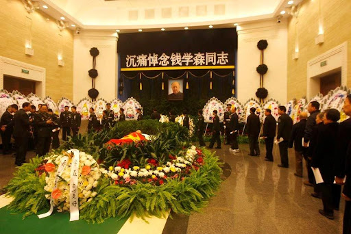 11月6日,钱学森遗体在北京八宝山革命公墓火化。胡锦涛、江泽民、吴邦国、温家宝、贾庆林、李长春、习近平、李克强等党和国家领导人前往八宝山送别。 |
