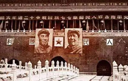 7日,中央在天安门广场举行了“卢沟桥事变12周年”纪念活动,悬挂的领导人画像只有毛主席和朱德两幅,在两幅画像的中间,还悬挂着一个红色的五角星。
