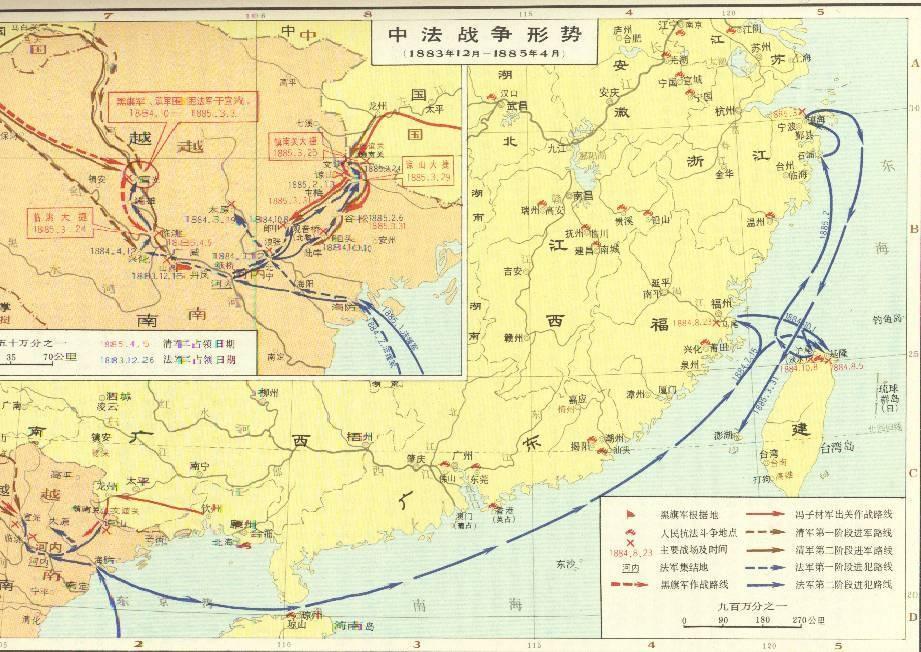 战争过程中,法海陆两军虽于多数战役占上风,但均无法取得底定全局的战略性大胜:法国远东舰队虽于海战赢得全胜,并一度攻占基隆,却因沪尾(今台北县淡水镇)一役受挫及疫病流行,无法达成拿下台湾岛的战略目的;而清军虽于初期陆海皆遭惨败,导致由恭亲王奕䜣领班的军机处被全面撤换(甲申易枢),但后期台湾及杭州湾防卫成功,且有冯子材统率各部于镇南关之役给法国陆军带来较重伤亡,导致费里政权垮台。