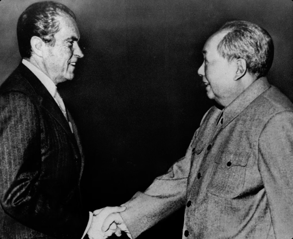 21日,美国总统尼克松访问中国,并于27日在上海发表了中美双方联合公报,结束了两个大国的对立状态,迈开了实现两国关系正常化的第一步。