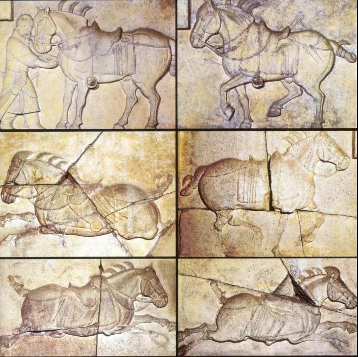 李世民随父亲打天下时,曾先后骑过特勒骠、飒露紫、白蹄乌、青骓、什伐赤、拳毛䯄六匹战马,这些战马真可谓立下了汗马功劳。这位“马上皇帝”对这些良驹念念不忘,特地请阎立德等人用浮雕描绘它们的形貌、神韵。 在皇后去世四个月后,六骏浮雕也完成于九嵕山下,这标志着长孙皇后的陵墓正式建成。陵前那六匹战马的青石塑像,就是后来闻名海内外的“昭陵六骏”。
